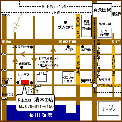 JR・地下鉄山手線・地下鉄海岸線「新長田駅」からお越しの方
