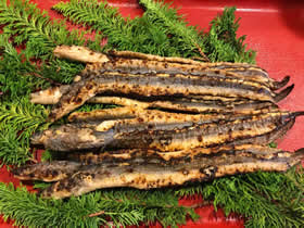 S 3500円 10本 小ぶりのとてもお得な穴子です。 酢の物、だし巻き等に刻んでどうぞ。 M 3500円 7本 色々なお料理に使える良い大きさの穴子です。ちらし寿司、鍋焼きうどん等にどうぞ。 L 3500円 5本 食べ応えのある肉厚のジューシーな穴子です。ちらし寿司、棒寿司等にどうぞ。 LL 3500円 3本 割烹店や料亭などでも使われる最高級の穴子です。軽く炙って、わさび醤油でどうぞ。 お召し上がり方 ◆コンロ、グリルで軽く炙ってください。 ◆電子レンジの温めは硬くなりますのでご遠慮ください。 |